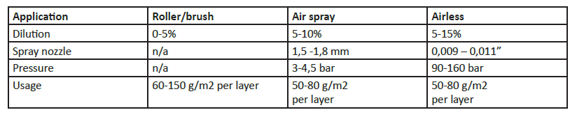 NOTE: The application temperature should be between 10 – 35°C with a relative humidity between 30 – 75%. Do not apply at a substrate temperature below 5°C (min. 3°C above dew point).